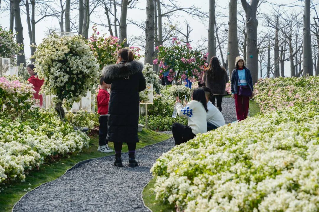 其中,,,,,花海长廊的簕杜鹃园成为热门打卡地,,,,,色彩美丽的花朵绚烂盛放,,,,,设计师将灵感奇思揉进景观空间四个分区,,,,,占地总面积达5000平方米,,,,,打造冰天雪地-粉妆玉砌-红妆素裹-前橙似锦四大板块的簕杜鹃专类展园,,,,,引来大宗游客前来照相打卡。。。。。。。