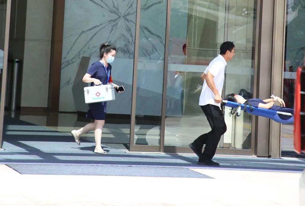 现场,,,,,,,装备包管组、疏散指导组、医疗救护组、勤务组、抢险灭火组、现场警戒组有条不紊地开展各项事情。。。。。。。经由17分钟的“战斗”,,,,,,,乐成将 “火灾”杀绝,,,,,,,将“伤员”转移至清静区域,,,,,,,至此演练圆满竣事。。。。。。。