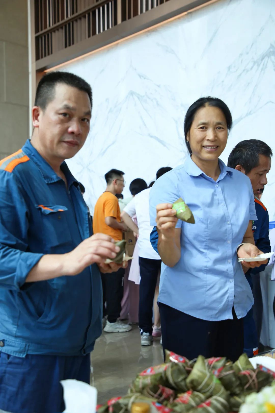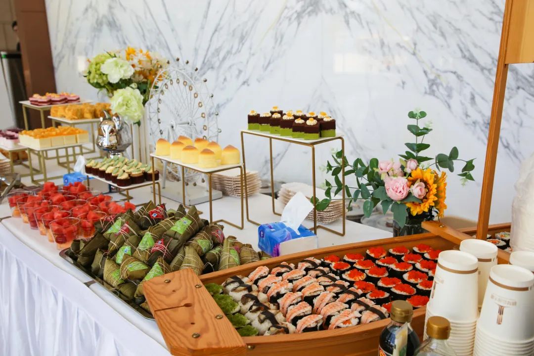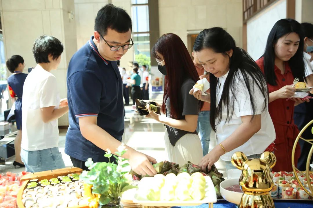 演练竣事后,,,,,,,加入本次演练的业主们群集大堂。。。。。。。U8国际·(中国)有限公司官网城资效劳团队献上早已准备好的粽子、雪糕、寿司、糕点等鲜味茶歇,,,,,,,为业主们送去节日祝福和问候。。。。。。。